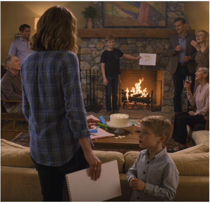 Ils étaient tous déjà là à notre arrivée. Ma sœur Trish, son mari, leurs enfants, mes parents, tous parlant fort, souriant à pleines dents, buvant trop vite. Cette énergie étrange et fragile planait dans l’air comme une fausse publicité Hallmark : brillante en surface, mais tendue en profondeur.