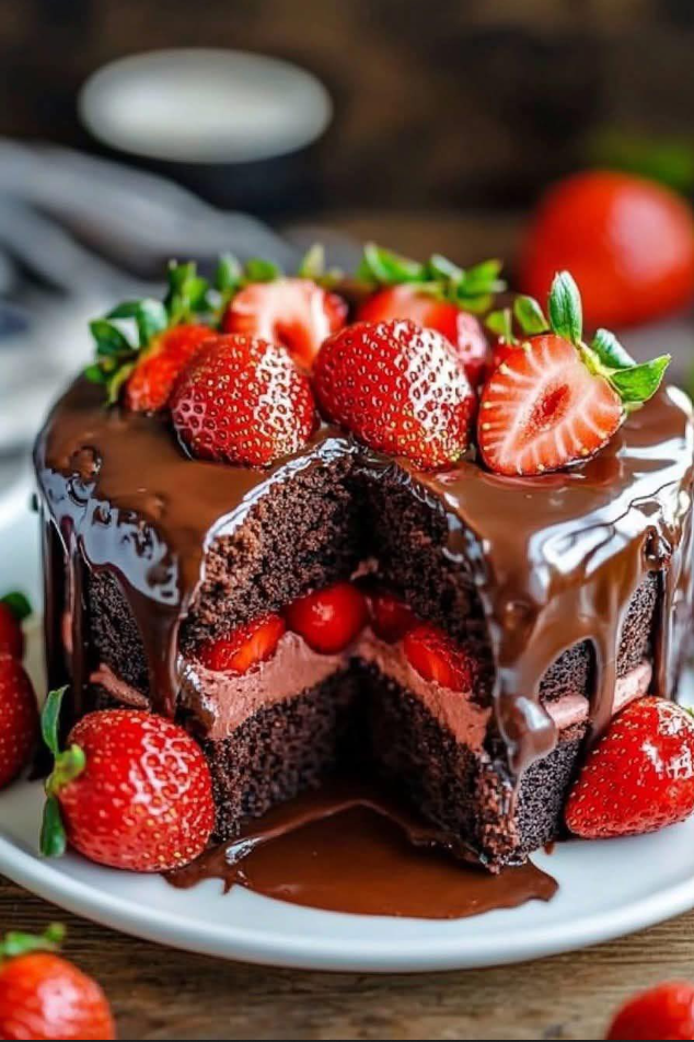 Ce dessert se prête aussi bien à une occasion spéciale qu’à un goûter plus simple, grâce à sa structure en couches et à ses finitions adaptables. Vous pouvez choisir une ganache élégante et brillante pour un rendu sobre et raffiné, ou une crème au beurre au cacao pour un résultat plus gourmand et classique. Dans tous les cas, le contraste entre le chocolat et la fraise reste au cœur de l’expérience.