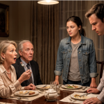 En plein milieu de la table, où régnait un silence pesant, le père de mon petit ami milliardaire a pointé du doigt ma robe et a déclaré : « Les racailles des rues en vêtements empruntés devraient arrêter de rêver de s’asseoir à cette table. » – Les 23 invités ont retenu leur souffle tandis que je posais ma serviette et me dirigeais vers la porte avec un sourire… et aucun d’eux ne se doutait que ce soir-là même, une décision de cette « racaille » allait faire trembler son empire.