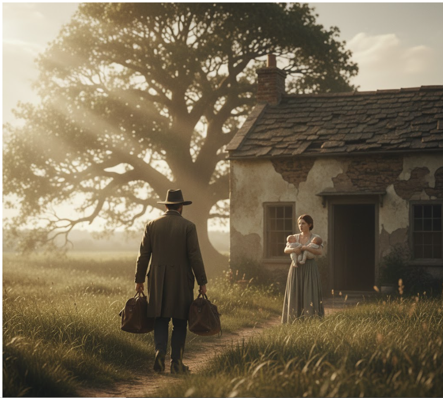 Empujó la puerta con cuidado. El crujido del madera se tragó el silencio. Encendió un farol de aceite que peleó con el viento y entró. Adentro había tierra en el suelo, hojas secas, telarañas que brillaban como hilos de culpa. Dio dos pasos más… y se detuvo. Un llanto. Pequeño, quebrado, inconfundible. Luego otro, distinto, como si la misma angustia tuviera dos voces. Dos bebés. João sintió que el corazón le golpeaba como si alguien llamara desde dentro. Avanzó hacia el fondo, bordeó unas tablas viejas… y la vio.