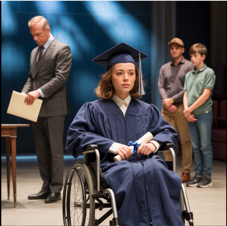 Ella se graduó con honores, sola, en una silla de ruedas, mientras su padre, un magnate poderoso, le dejaba un sobre y se marchaba sin mirarla. Él, un trabajador de mantenimiento, la observó desde lejos hasta que su hijo de 8 años le preguntó por qué nadie la abrazaba. Lo que pasó después no estaba planeado.