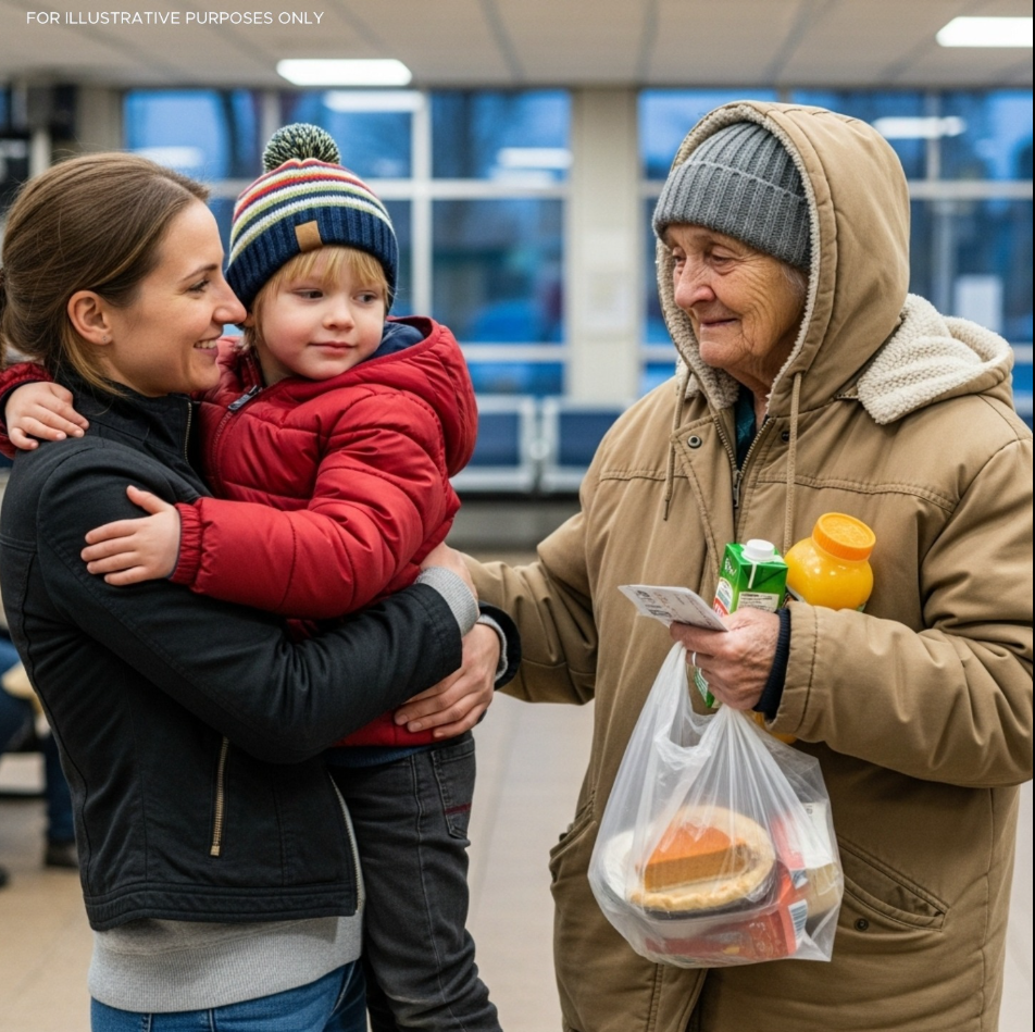 « J’ai honte de vous le demander, dit-elle. Mais, s’il vous plaît, madame, pourriez-vous acheter quelque chose à manger pour mon petit-fils ? On m’a volé mon portefeuille et je ne sais pas comment nous allons rentrer… mais il a faim et… j’ai besoin qu’il mange. »