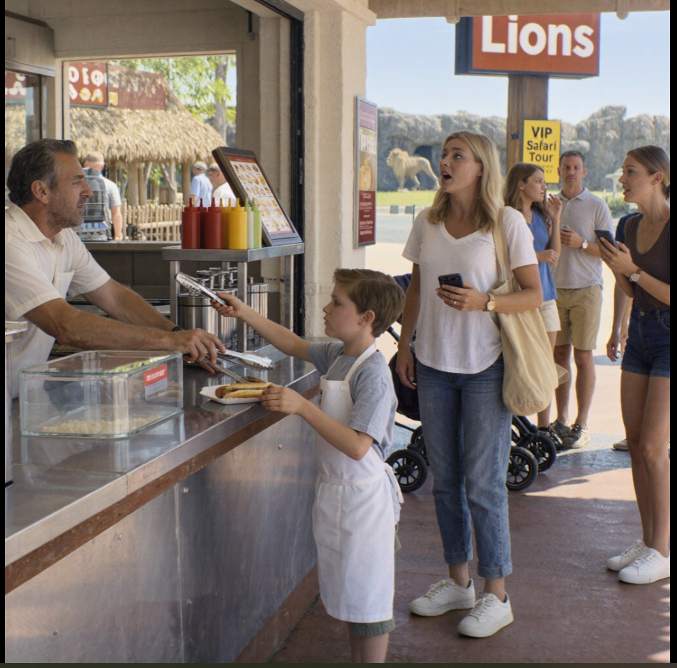 « Vous laissez travailler mon enfant de huit ans », dis-je d’une voix basse et maîtrisée. « À la buvette d’un zoo. »