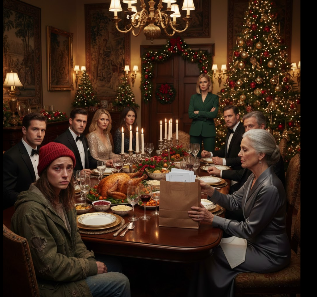 Je me suis glissée à l’intérieur, ajustant mon manteau pour que les poignets effilochés soient bien visibles. L’air embaumait la cannelle, le pin et un merlot de grande qualité. Une guirlande fraîche, tissée de rubans de soie, ornait la rampe d’escalier comme un lourd collier. La maison bourdonnait des murmures de la famille élargie, un brouhaha de voix qui s’est tu dès que j’ai franchi le seuil.