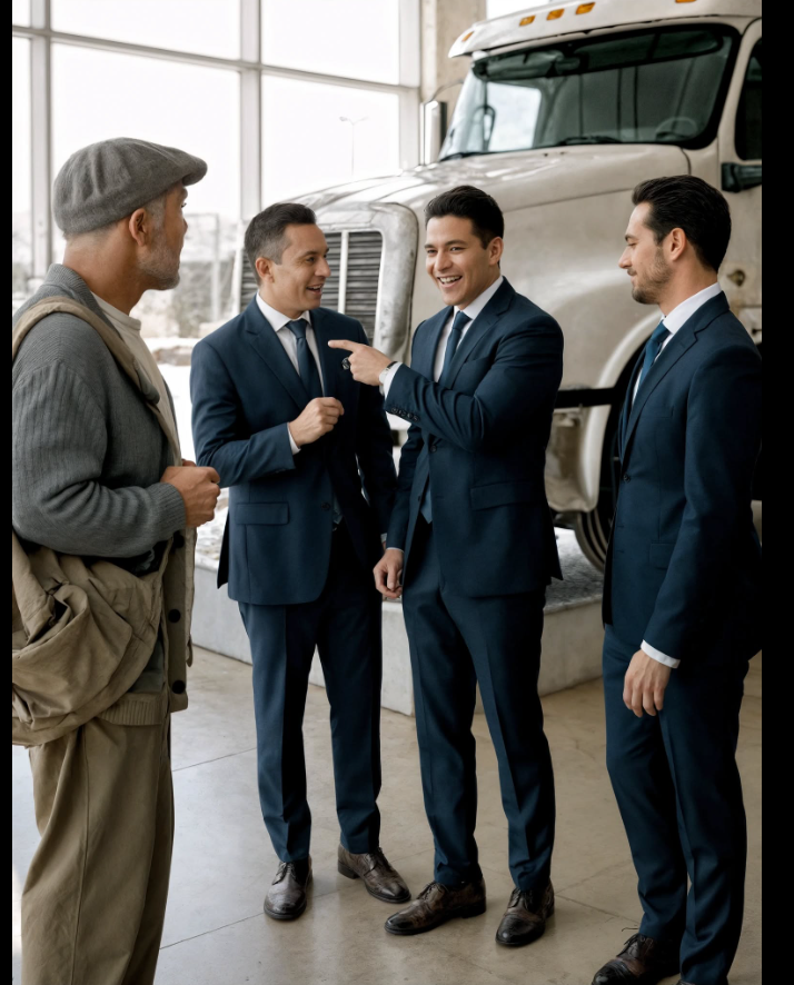 « On est d’accord ? » Les trois se serrèrent la main dans un pacte silencieux. Trois mois plus tard, Lucas reçut un jeune homme aux vêtements tachés de graisse qui demandait des informations sur le financement d’un camion. Il lui offrit un café. Il le traita avec un respect absolu, expliquant chaque option disponible. Le garçon n’acheta pas ce jour-là, mais revint deux semaines plus tard avec son père, un entrepreneur du transport qui finit par acheter quatre unités.