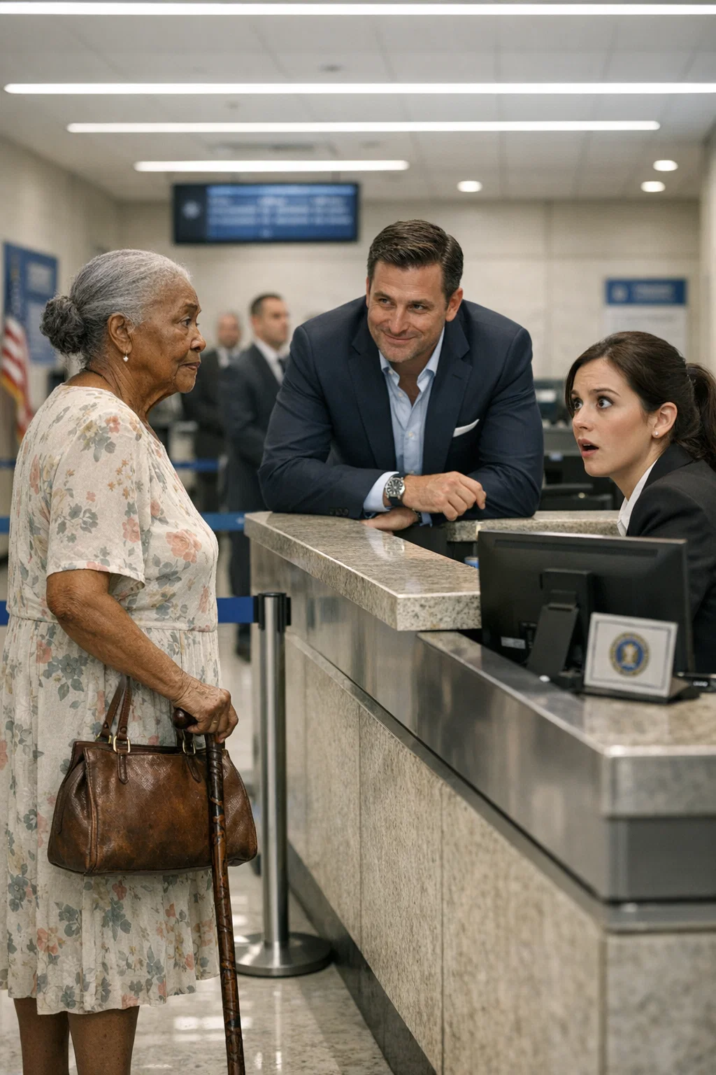 La file d’attente aux guichets était longue, mais Evelyn patientait. Juste derrière elle se tenait Richard Harrington, un millionnaire de l’immobilier d’une cinquantaine d’années, à l’allure flamboyante, connu en ville pour ses voitures de luxe, ses costumes de marque et son caractère exubérant. Il consultait sa Rolex avec impatience, grommelant sur la lenteur du service.