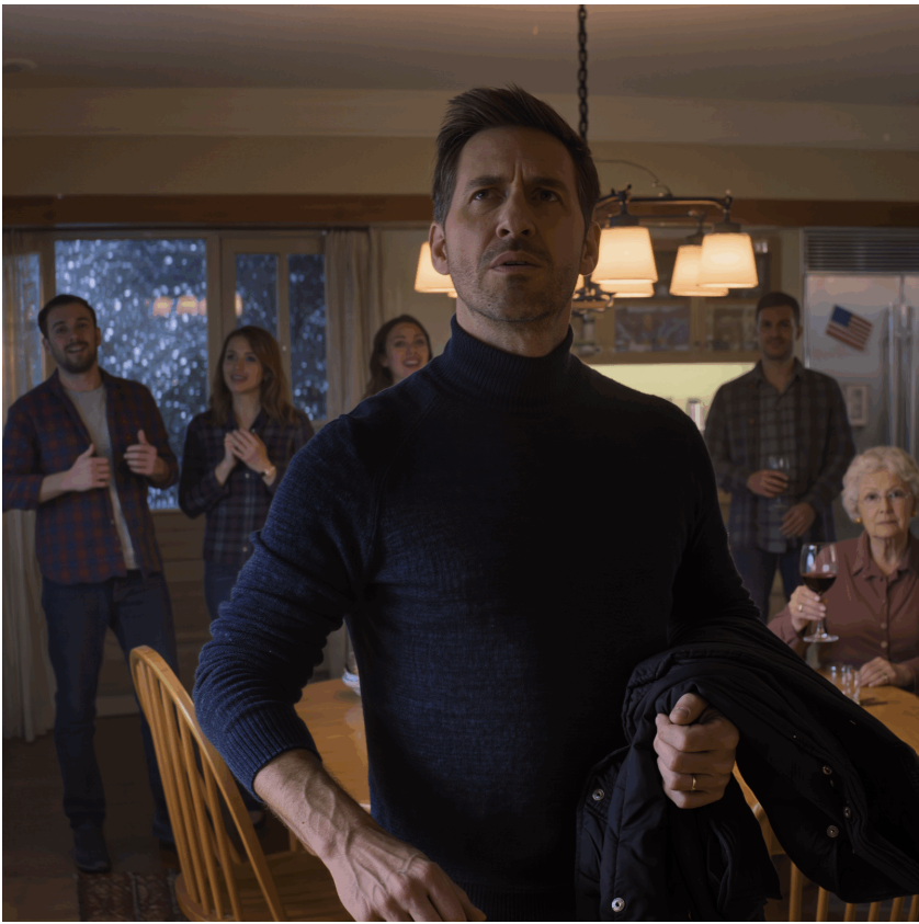 J’ai jeté un coup d’œil autour de la table. Certains souriaient. D’autres fixaient leur assiette. Je me suis levé lentement et j’ai glissé ma veste de ma chaise.