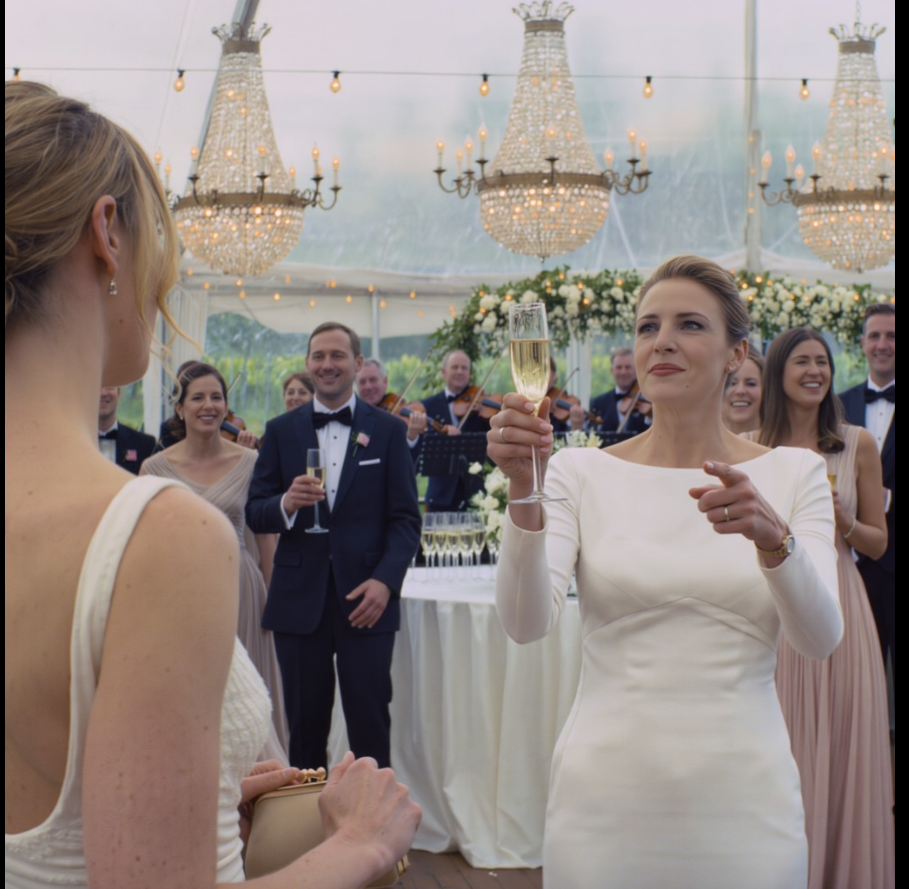 Le vignoble était indécent de luxe : lustres, roses, odeur de raisin écrasé et d’argent. À l’intérieur, le champagne coulait, les rires étaient trop éclatants, la familiarité trop huilée. J’ai trouvé ma mère près d’une colonne drapée de soie. Elle m’a serrée fort.