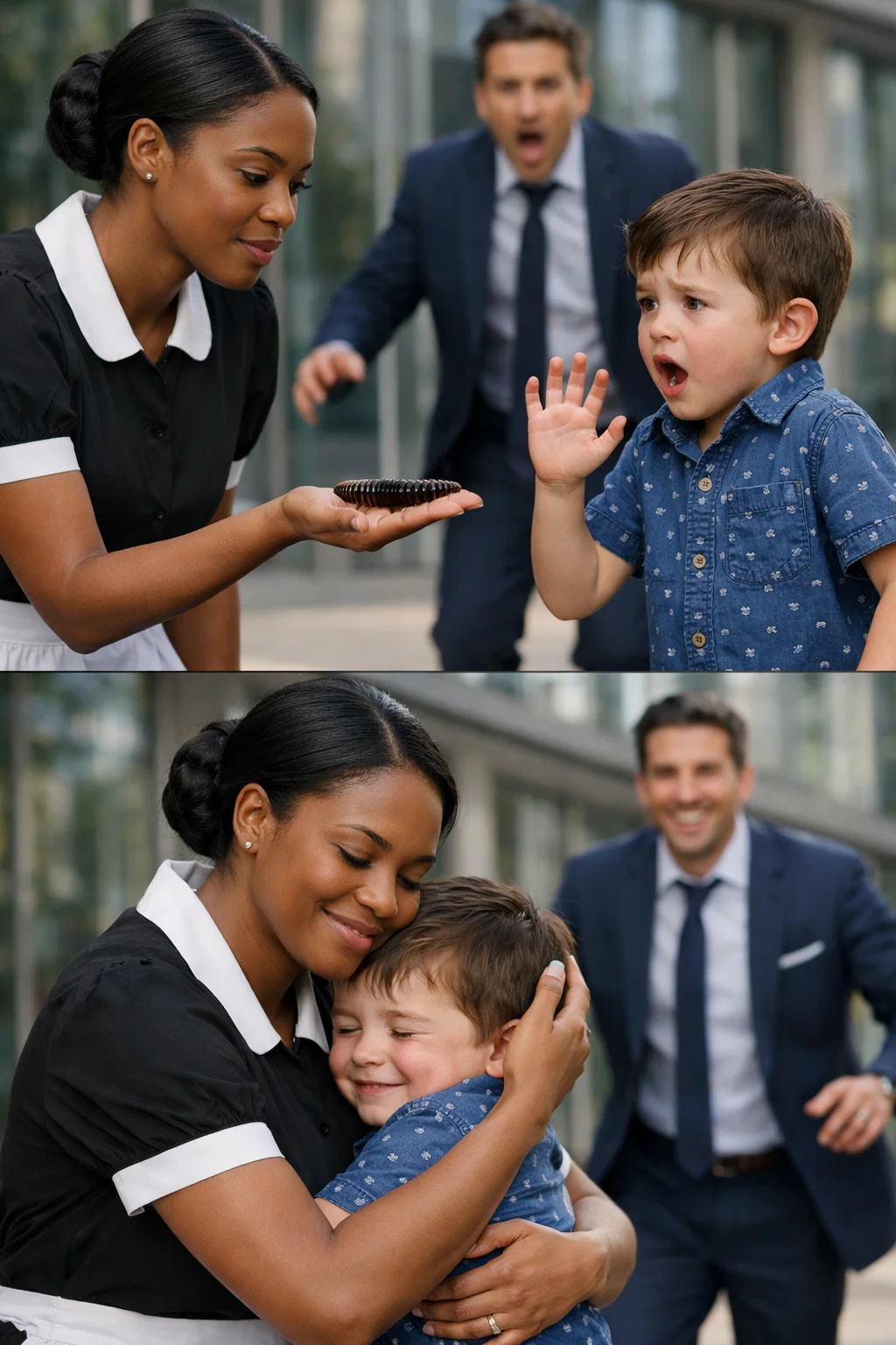 Agenouillée près de lui, les mains tremblantes, se trouvait Grace. Sa jupe d’uniforme était encore farinée par le service de pâtisserie de la veille ; les plis de son tablier étaient impeccables, et sa posture, digne d’une maison, était parfaite. À présent, ses doigts berçaient quelque chose d’inattendu, sur le marbre d’une famille millionnaire : une petite chose sombre et humide qui bougeait avec une légère insistance, comme animée d’un rythme propre.