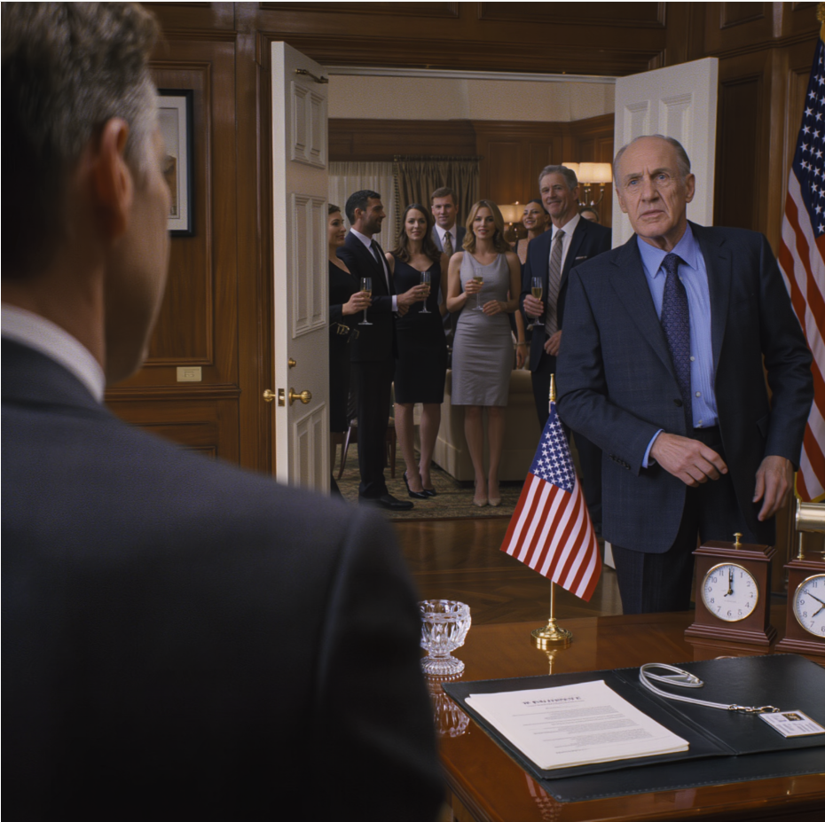 Le bureau de Richard exhalait un parfum de cuir précieux et de décisions anciennes. Un bureau en acajou faisait face à la porte, tel un banc de juge. Des photos encadrées ornaient les murs : Richard serrant la main de sénateurs, Richard lors d’inaugurations, Richard souriant aux côtés d’hommes qui semblaient n’avoir jamais essuyé de refus.