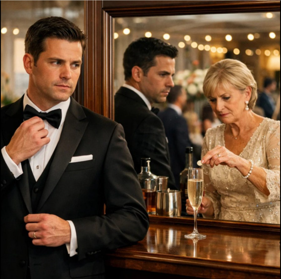 À ma réception de mariage, j’ai vu ma belle-mère glisser discrètement quelque chose dans mon verre. Elle pensait que j’allais le boire, mais j’ai échangé nos verres. Et quand elle a porté un toast, j’ai souri. C’est là que le vrai drame a commencé. Le miroir derrière le bar a tout capturé. J’étais en train d’ajuster ma cravate, essayant de me calmer avant les toasts, quand j’ai aperçu son reflet.