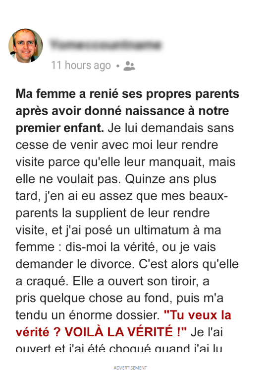 “Maman a dit que je ne pouvais pas aller chez grand-mère”, m’a raconté notre fils, Lucas. “Grand-père m’aide à faire mon devoir”.