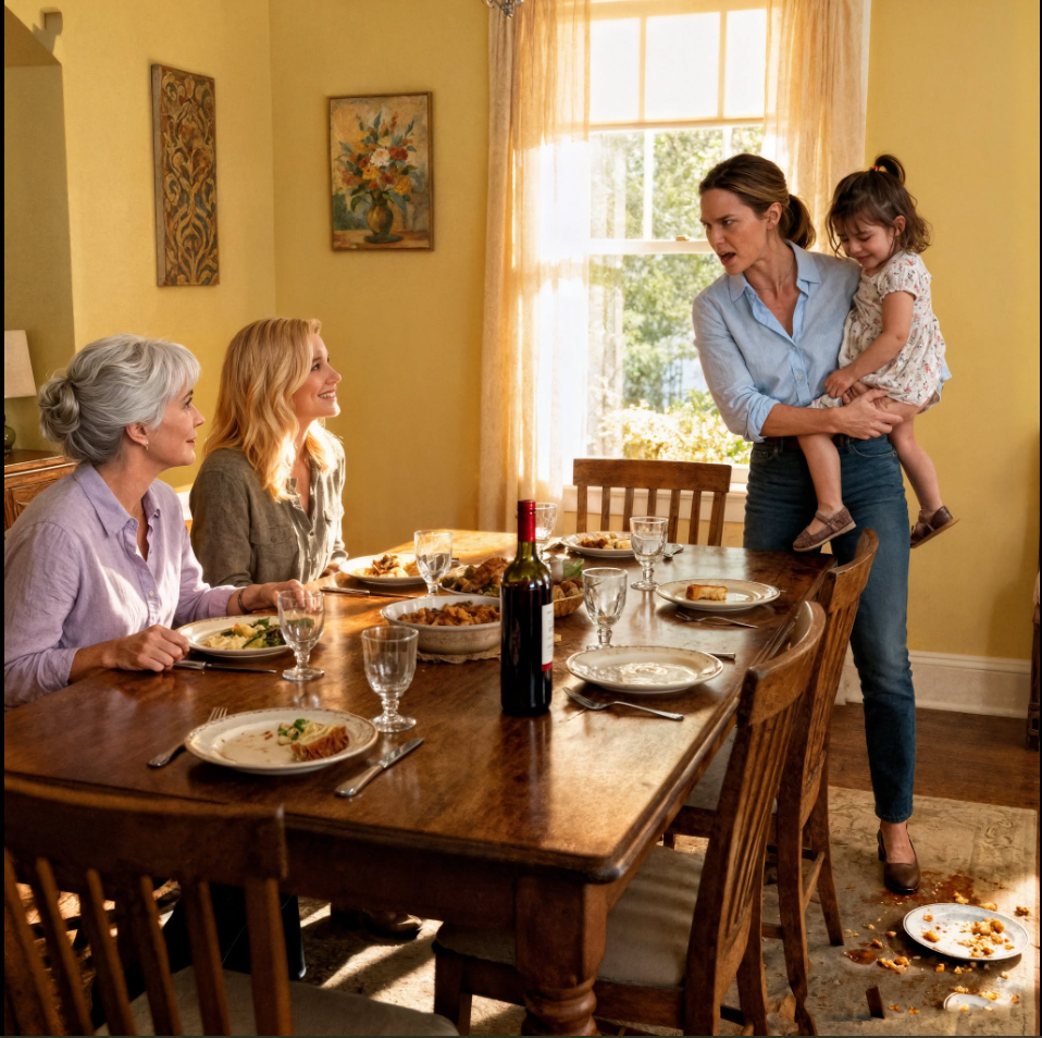 Je restais assise tranquillement à côté de ma fille de trois ans, Emma, l’aidant à couper de minuscules bouchées. Elle avait été d’un exemplaire parfait toute la soirée, balançant ses jambes sous la chaise et essayant de participer à une conversation où personne ne prenait la peine de l’inclure.