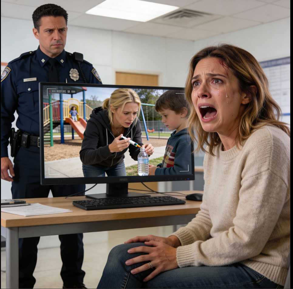 Aparecieron imágenes de seguridad: media mañana, el patio de la escuela. Niños corriendo, riendo. En el borde del encuadre había una mesa con botellas de agua. Entonces una mujer —sudadera con capucha, movimientos rápidos— se acercó a la mesa. Escaneó su entorno y luego levantó una sola botella: la de Jacob. Se me cortó la respiración. Con facilidad practicada, sacó algo de su bolsillo —una pequeña jeringa— e inyectó un líquido transparente en la botella antes de volver a dejarla. Cuando la mujer se dio la vuelta, mis rodillas casi cedieron.