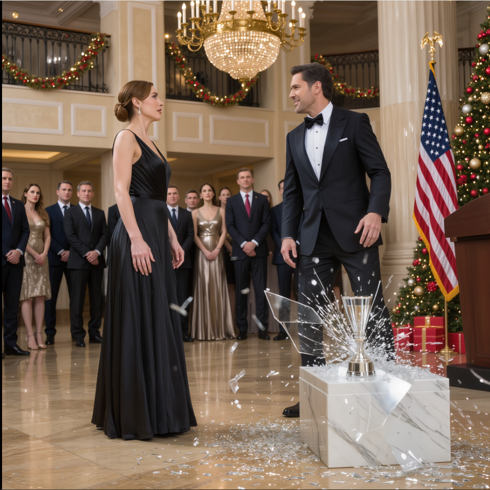 Le sol en marbre de la salle de bal était si brillant qu’il reflétait les lustres comme un second plafond. Le trophée brisé capta cette lumière et, pendant une fraction de seconde, scintilla comme un collier éparpillé. Diamants. Glace. Un million de minuscules preuves.