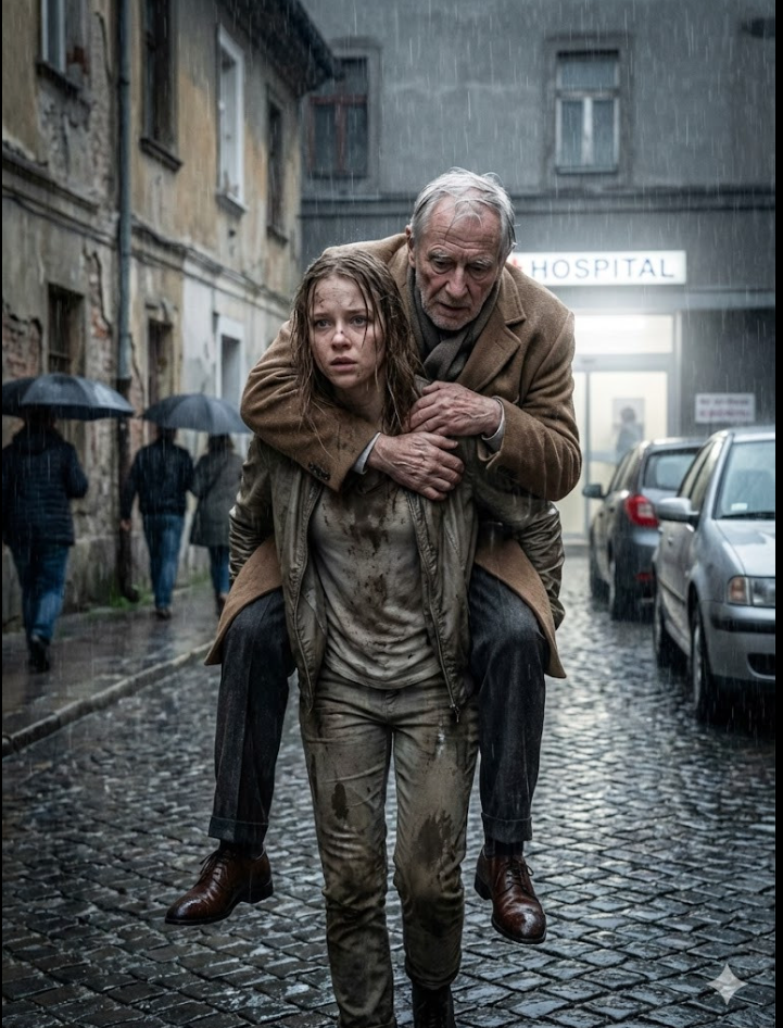 se tenait un vieil homme, le pull trempé, agrippé à un lampadaire comme si c’était la dernière chose qui le maintenait debout.