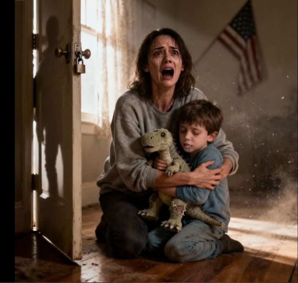 La porte était verrouillée de l’extérieur. Quand je l’ai ouverte, une odeur d’urine et de poussière m’a assailli. Noah était recroquevillé sur le sol, serrant contre lui un dinosaure en peluche, les joues creuses, et à côté de lui se trouvait un gobelet en plastique.