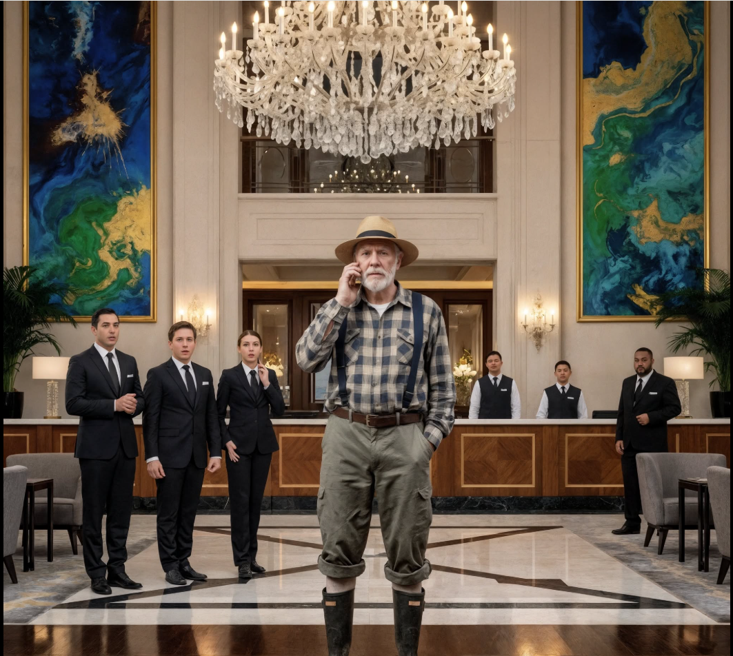 La jeune réceptionniste, au rouge à lèvres éclatant, le détailla des pieds à la tête en fronçant les sourcils. À ses yeux, un hôtel 5 étoiles n’accueillait que des gens élégants et « réussis », pas des paysans aux vêtements tachés. Elle se racla la gorge et lança d’un ton froid :