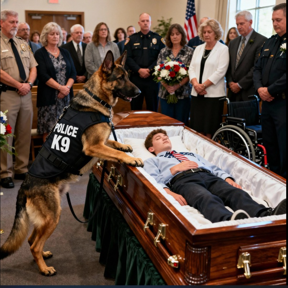 Assise au fond de l’église, Emily Ross , infirmière aux urgences et amie de la famille, fronça les sourcils. Elle ne savait pas l’expliquer, mais quelque chose clochait. Un cercueil scellé. Pas de veillée funèbre. Un déroulement précipité. Et maintenant, un chien dressé qui refusait de lâcher prise.