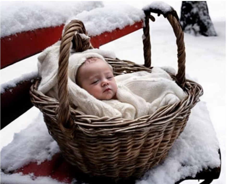 S’arrêtant, le jeune couple scruta les environs. « Ça semble venir de là-bas ! » finit par dire Nikolai, se précipitant vers le parc de la ville. Là, sur un banc déjà couvert de neige, un paquet d’où provenait le cri. « Il est si petit, » murmura Lika tout bas. « Mais où sont ses parents ? » « Je pense qu’ils l’ont laissé ici tout seul, » décida l’homme.