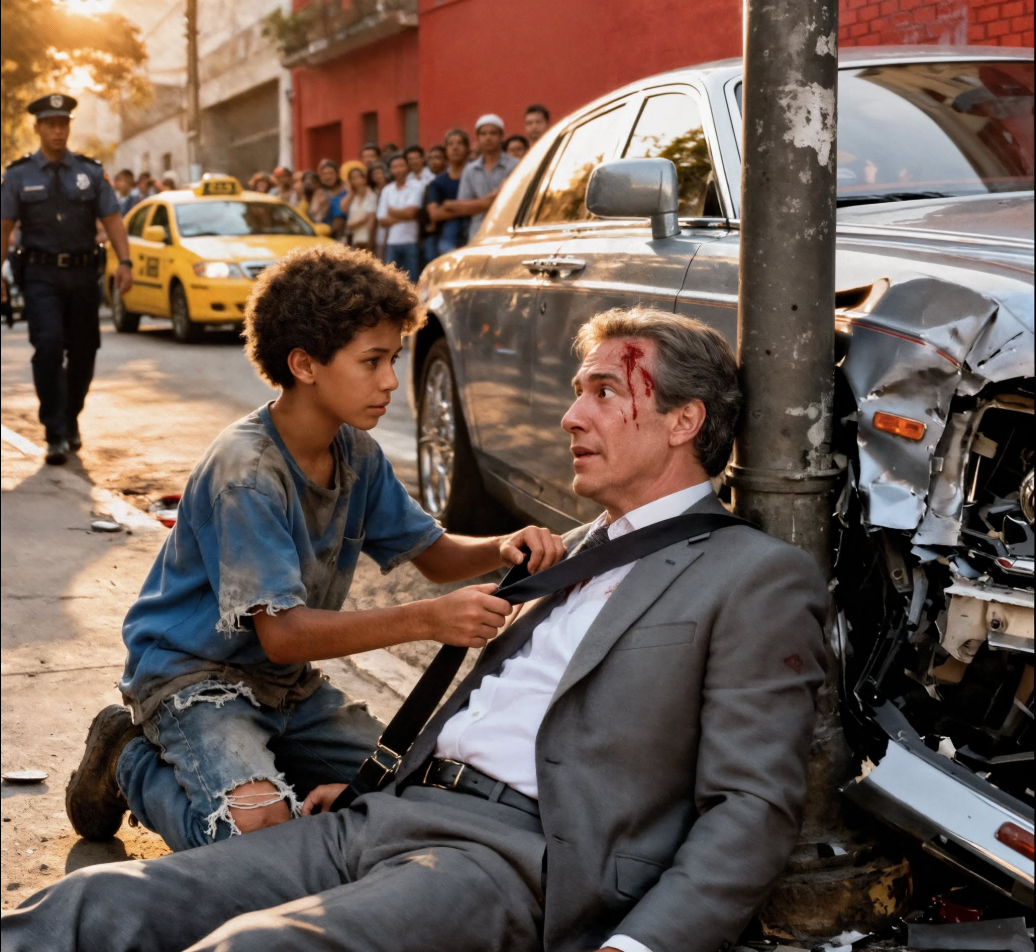 C’était un matin pluvieux de décembre quand tout arriva. Lucas était sorti vendre des bonbons au carrefour de l’Avenida Paulista. Entre les klaxons et les parapluies, il vit une voiture noire de luxe glisser sur la chaussée mouillée, perdre le contrôle et percuter violemment un poteau.