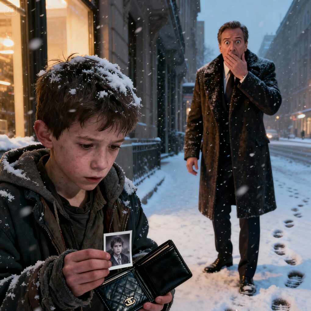Il ramassa le portefeuille en enlevant la neige et jeta un coup d’œil autour de lui. La rue était animée, les gens se pressaient sans le remarquer. Il ouvrit le portefeuille avec précaution. Son cœur rata un battement, non pas à cause de l’argent, qui était abondant, mais à la vue d’une photo glissée dans un rabat caché. La photo montrait un petit garçon aux yeux bleus étrangement familiers, aux cheveux bruns en désordre et au sourire timide. Jason se figea. Ces yeux… ce sourire… c’était comme se regarder dans un miroir.