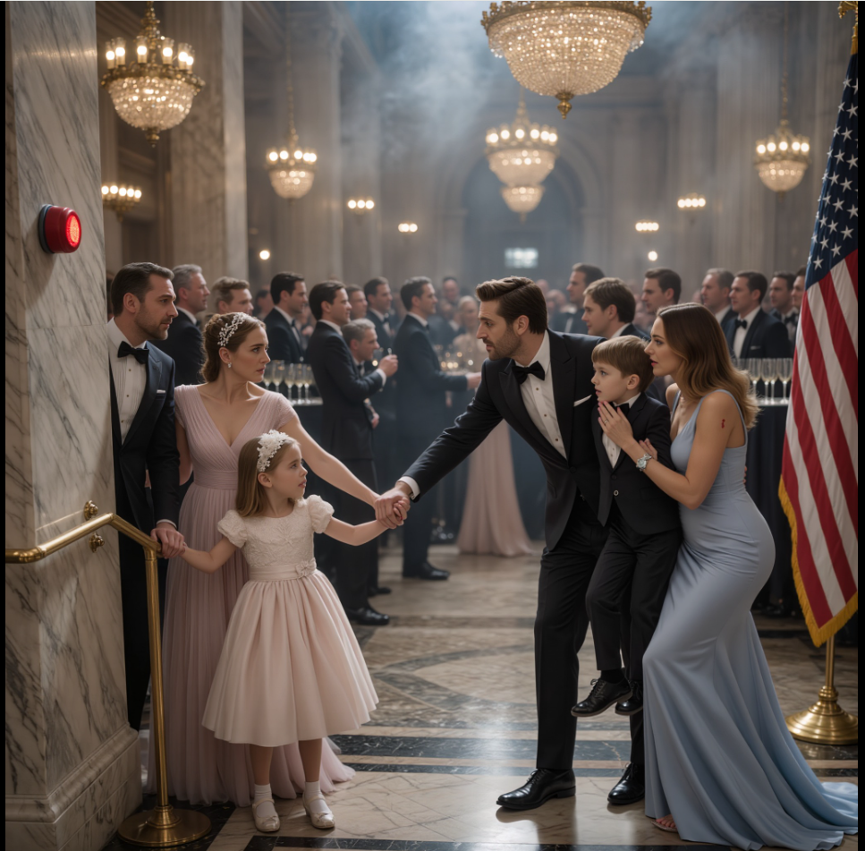 D’un large mouvement de ses longs bras, il souleva Noah — déjà âgé de huit ans et plus robuste que Lily — tandis que de l’autre main, il serrait Serena contre lui, la protégeant comme un trésor inestimable, avant de se frayer un chemin à travers la foule et de se précipiter vers la sortie de secours sans se retourner.