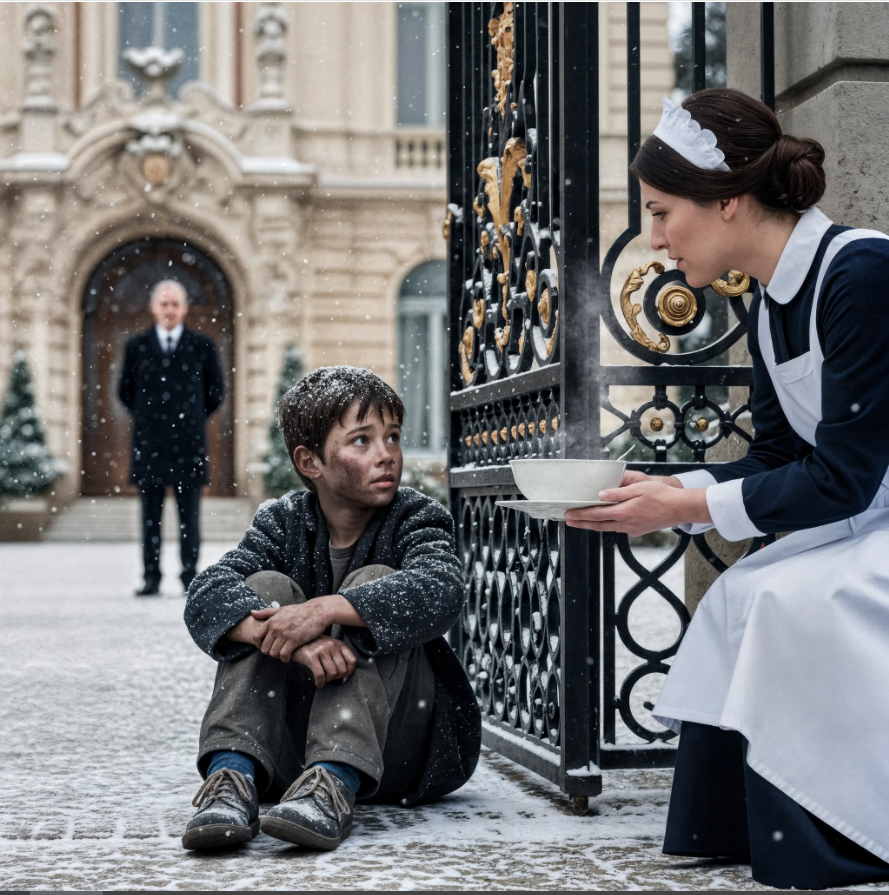 Un garçon. Pieds nus, le visage taché de saleté, les bras serrés contre sa poitrine maigre tandis qu’il tremblait dans le froid d’automne. Ses yeux creux restaient fixés sur la grande porte d’entrée, comme si elle pouvait s’ouvrir sur le salut.